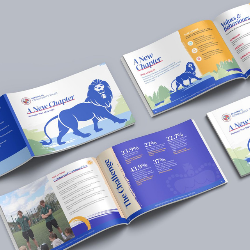 As part of the wider strategy for the women’s team, we took on a project which rebranded the 2026-2029 Strategic Plan at Reading FC’s Community Trust.